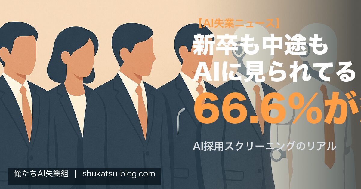 これ、新卒や転職活動中の人だけの話やないんですよ。中途採用でも書類のATS(応募者管理システム)スクリーニング、AIエージェントによる初期質問——「自分は転職する気はない」っていう人にも、子供の就活相談、後輩のキャリア相談として降りかかってくる話です。5分だけ、いま起きてることをちゃんと整理させてください。