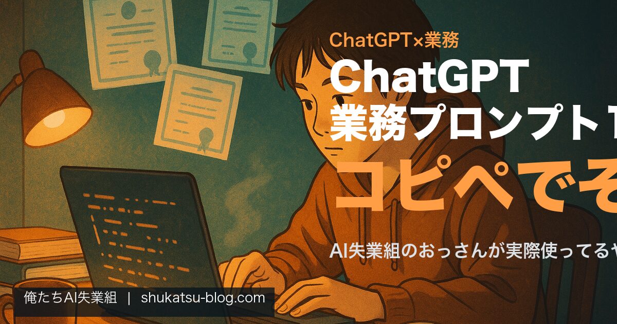 この記事は「ChatGPTの使い方講座」じゃないです。ぽんこつ先輩が実際に毎週業務で使ってるプロンプトを、コピペできる形でそのまま10個渡す記事です。失敗パターンと「これで何時間浮くか」も全部書いときます。5分お付き合いください。