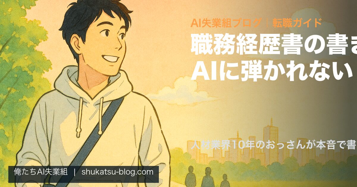 AI失業の足音が聞こえる今、職務経歴書の書き方を知らないままだと、人間の採用担当者の目にすら触れずに終わる確率が上がります。この記事は人材業界10年のおっさんが、AIに通って・採用担当者にも刺さる職務経歴書の書き方を、コピペで使えるレベルで全部書く記事です。10分お付き合いください。